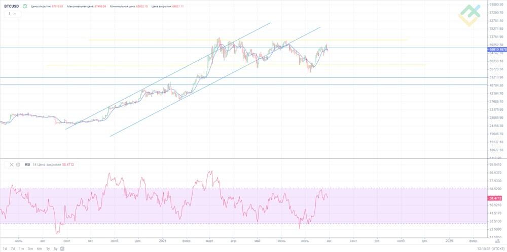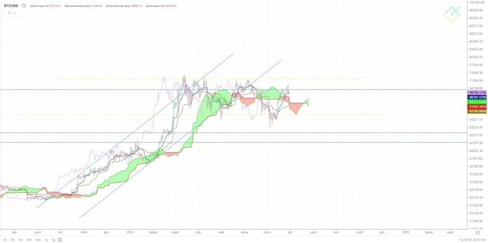 Based on the forecast for the next three months, BTCUSD may continue to trade flat in the long term. The price is trying to rise but cannot break through the resistance of 71,831. Some fundamental factors will likely be required for further exchange rate growth.