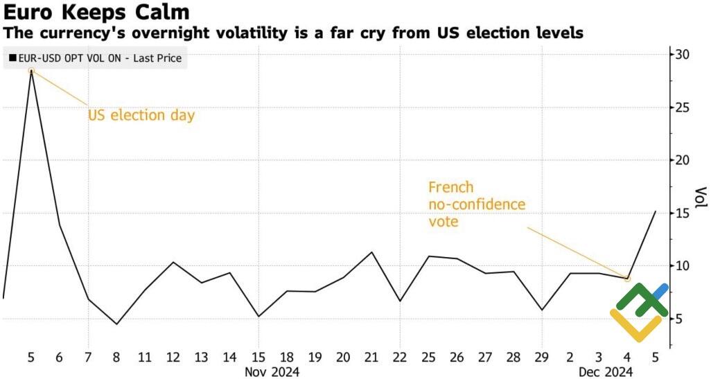 In France, the National Assembly has voted for a motion of no confidence, causing the government’s fall for the first time since 1962. This is unlikely positive news for the euro. France is entering a period of prolonged political unrest, during which dissolving parliament is not a viable option, appointing a new prime minister carries significant risk, and the president is reluctant to step down. Nonetheless, a vote of no confidence in Michel Barnier’s government was anticipated. Meanwhile, the EURUSD exchange rate did not collapse.