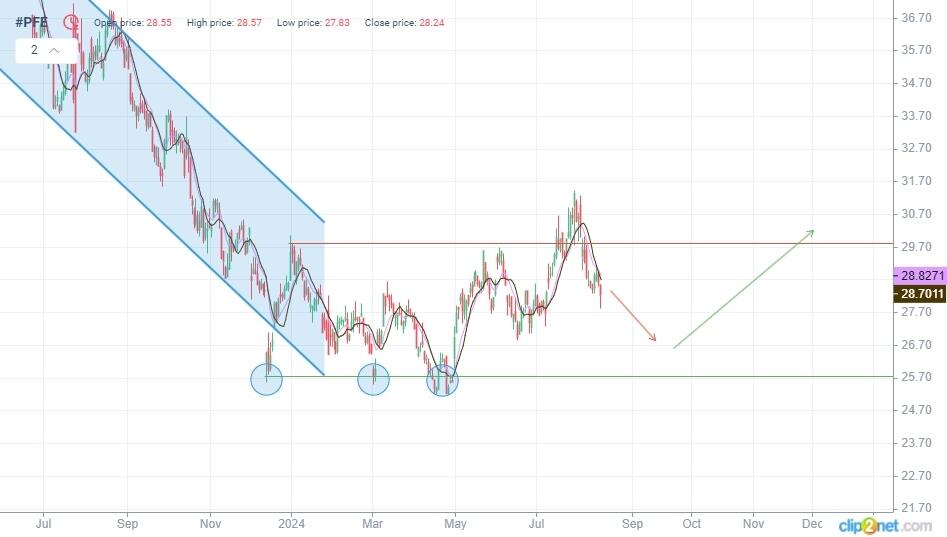Analysts are skeptical about Pfizer’s short-term prospects, expecting the stock to remain in a sideways channel in the near time. However, long-term forecasts indicate growth potential due to the company’s robust product pipeline and innovative developments.