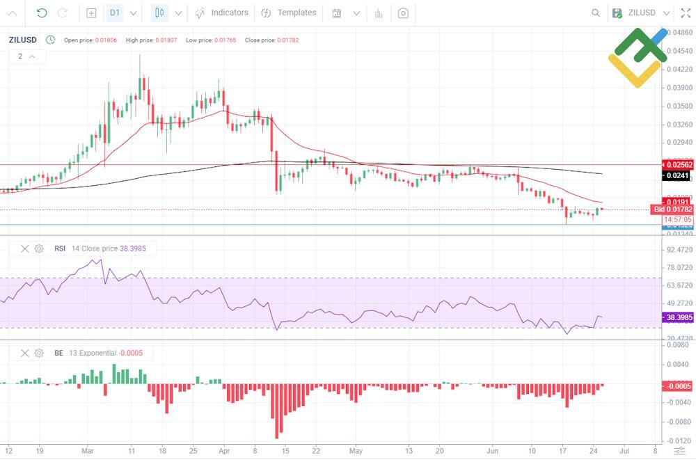 Let us analyze the daily chart of the ZILUSD cryptocurrency pair to explore the historical price movement.